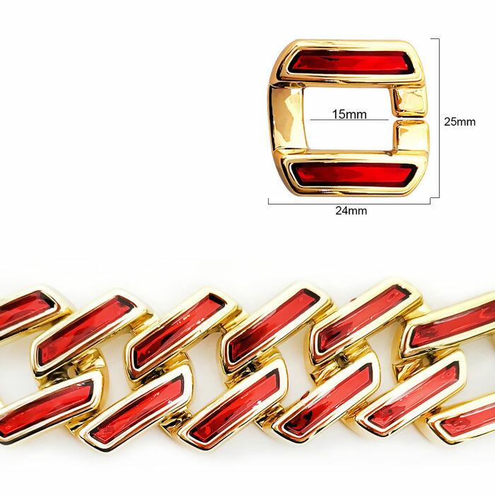 Descrição Elo de corrente 25mm x 24mm dourado/ Vermelho RO.152028
