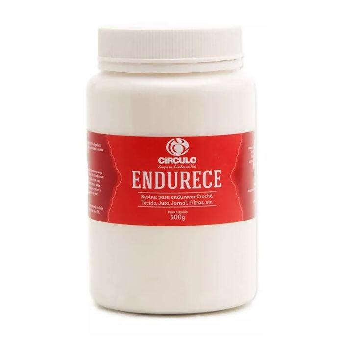Endurece é uma resina usada para endurecer e dar formato às peças feitas de crochê, tecido, juta, jornal, fibras e etc. Utilizando o Endurece, o artesão pode moldar a sua peça da maneira desejada. A aplicação em linhas, barbantes e tecidos deve ser feita de forma uniforme com pincel. Após modelar da maneira que desejar, deixar secar por 72horas. Pode ser usado para fazer potes, cestas, sacolas, abajures, bichos, potes, tapetes, enfeites, etc.
