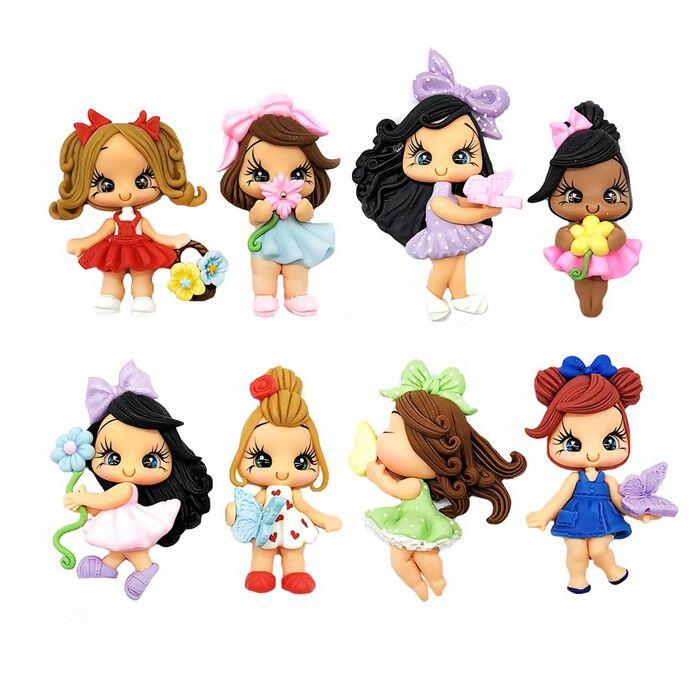 Descrição Enfeite Biscuit - Meninas com Borboleta - 8 unidades - Sortido - 102560