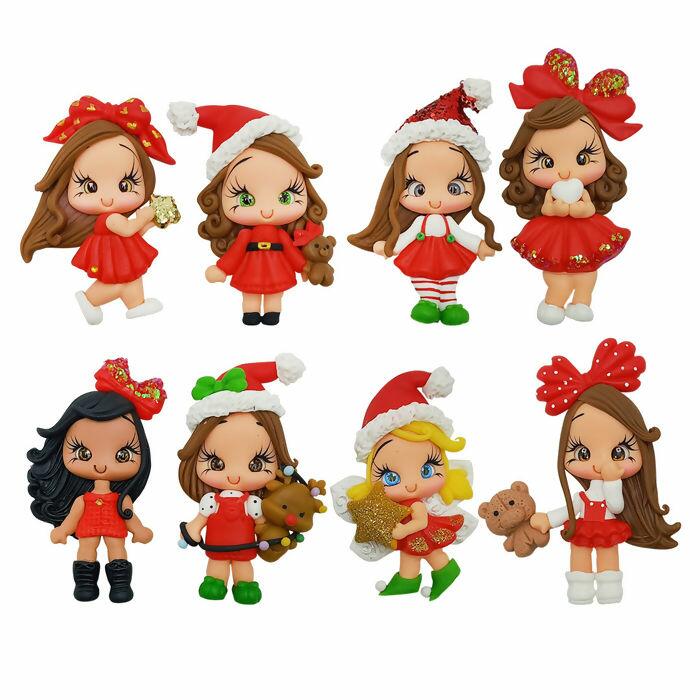 Detalhe Enfeite Biscuit - Meninas Natal - 8 unidades - Sortido - 089921