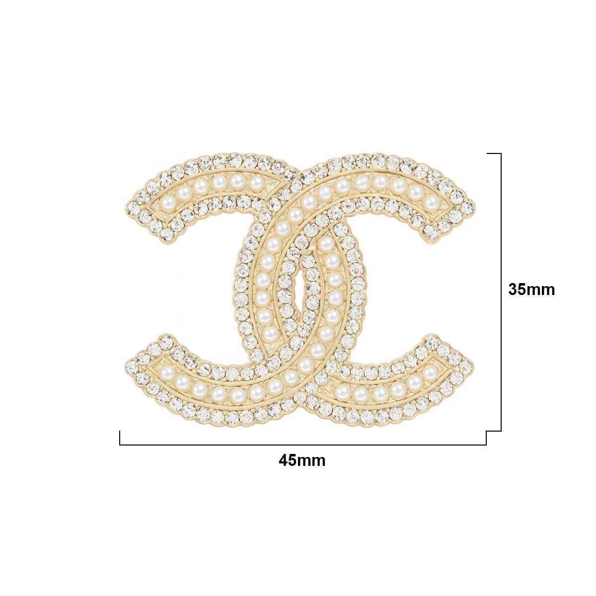 Descrição Enfeite Broche de Metal com Strass e Pérolas 45mm x 35mm RO.154036