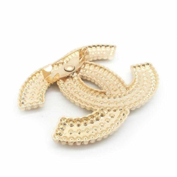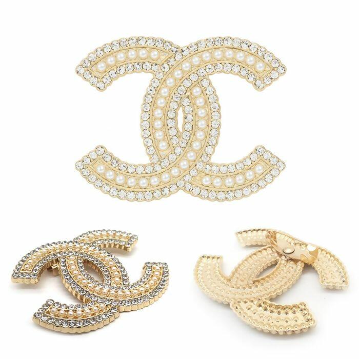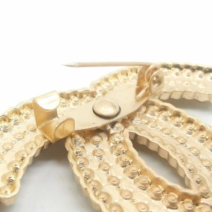 Palavras-chave: broche metal, strass dourado, enfeite com pérolas