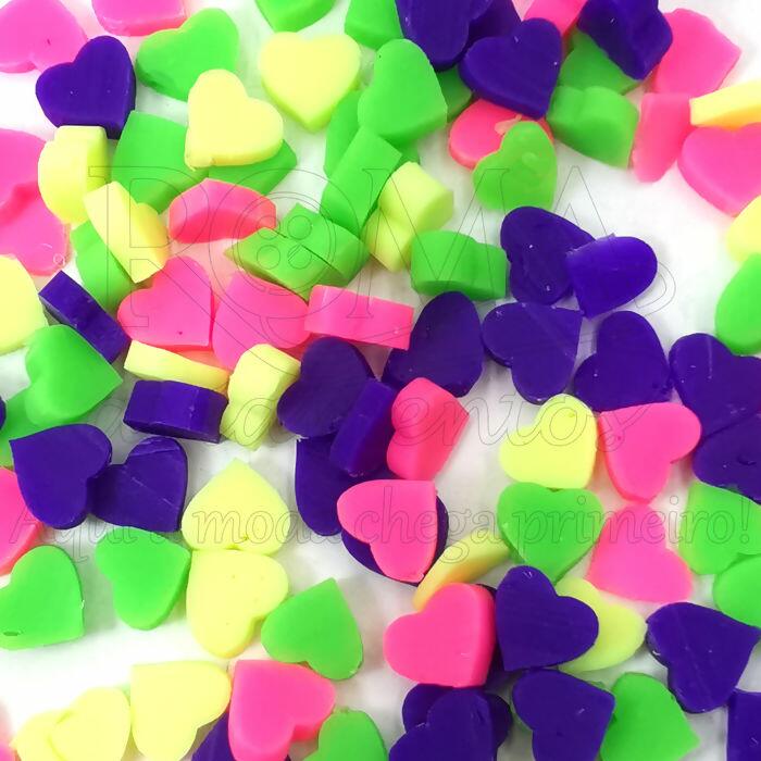 Descrição Enfeite Coração Neon Granulado - Pacote 20 gramas 1cm