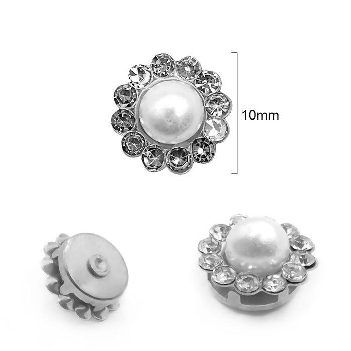 Descrição Enfeite Flor Strass - 10mm - Níquel/ Branco 33 - RO.151482