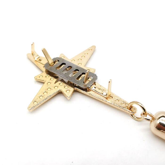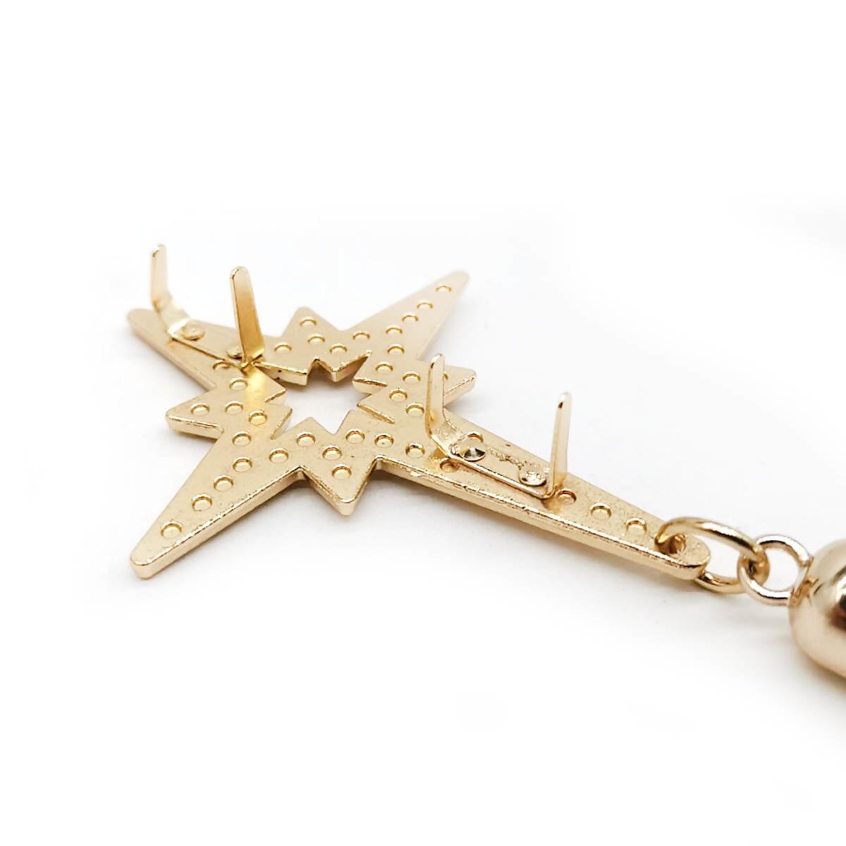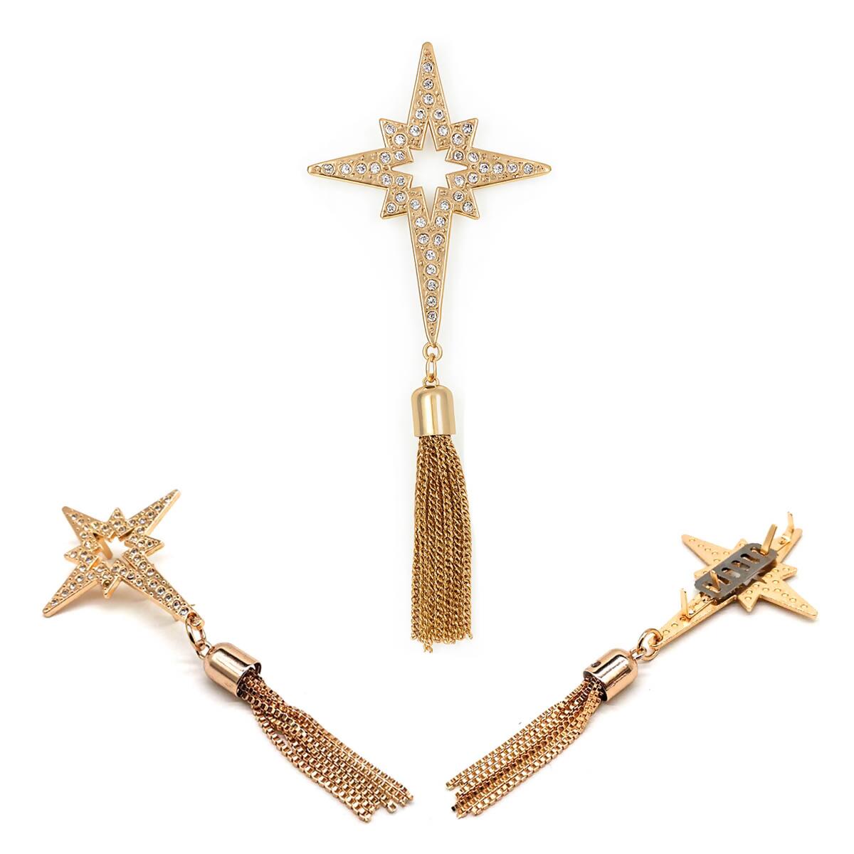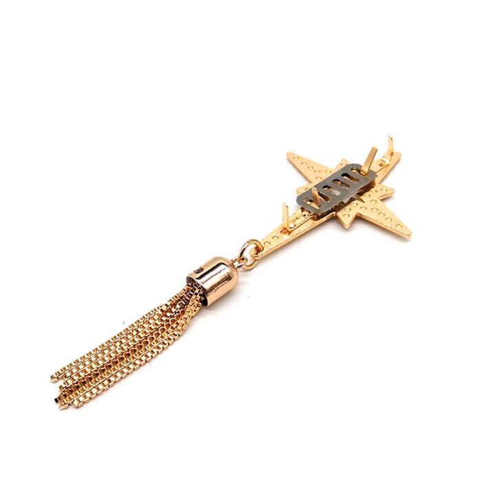 Enfeite de metal para bolsa em formato de estrela com acabamento em strass e detalhe de franja em corrente dourada. Uma peça sofisticada que transforma bolsas simples em acessórios de luxo.