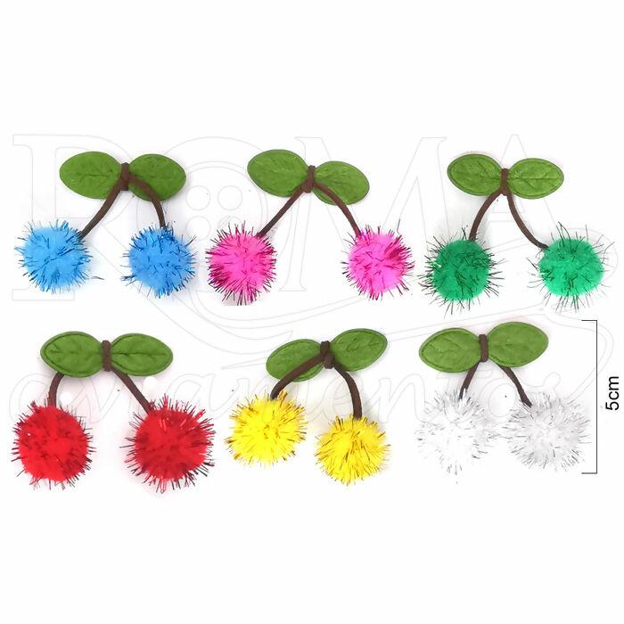Descrição Enfeite Pompom Cereja com Lurex - 20 unidades - Sortido - ROFR.171080