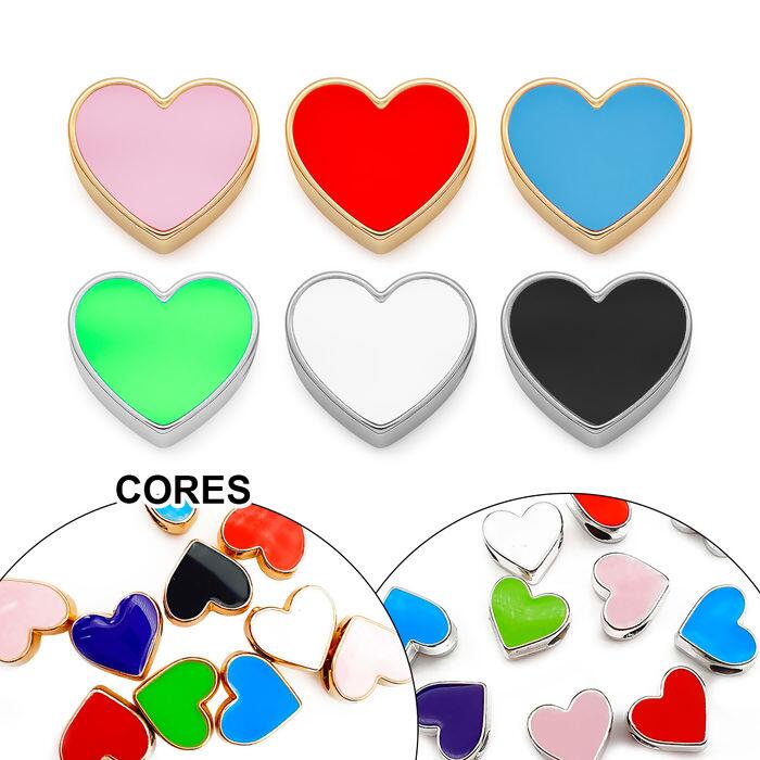 O entremeio coração é um charme para quem ama criar acessórios personalizados! Produzido em 100% plástico resistente, possui formato de coração e um furo passante de 5mm, ideal para montagem de pulseiras, colares, chaveiros e tiaras.