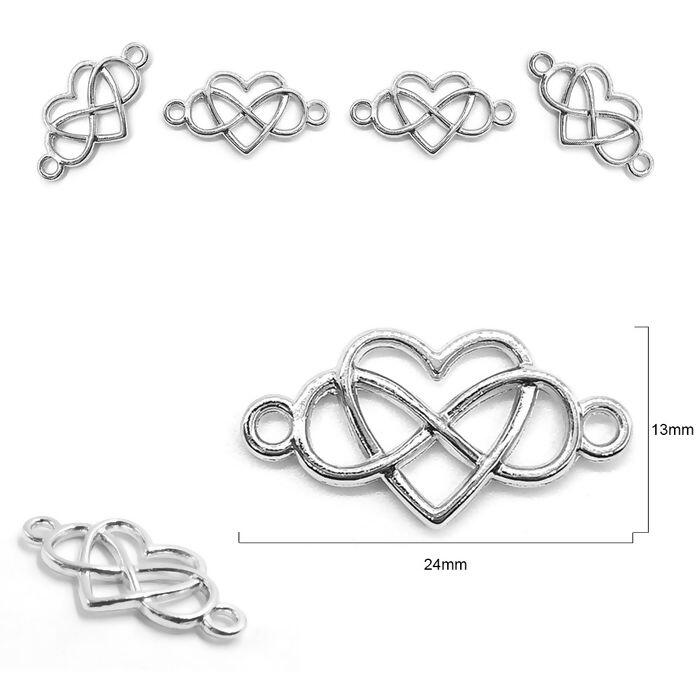 Entremeio Metal Coração e Infinito - 13mm x 24mm - Níquel - RO.151791