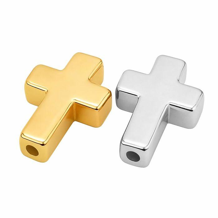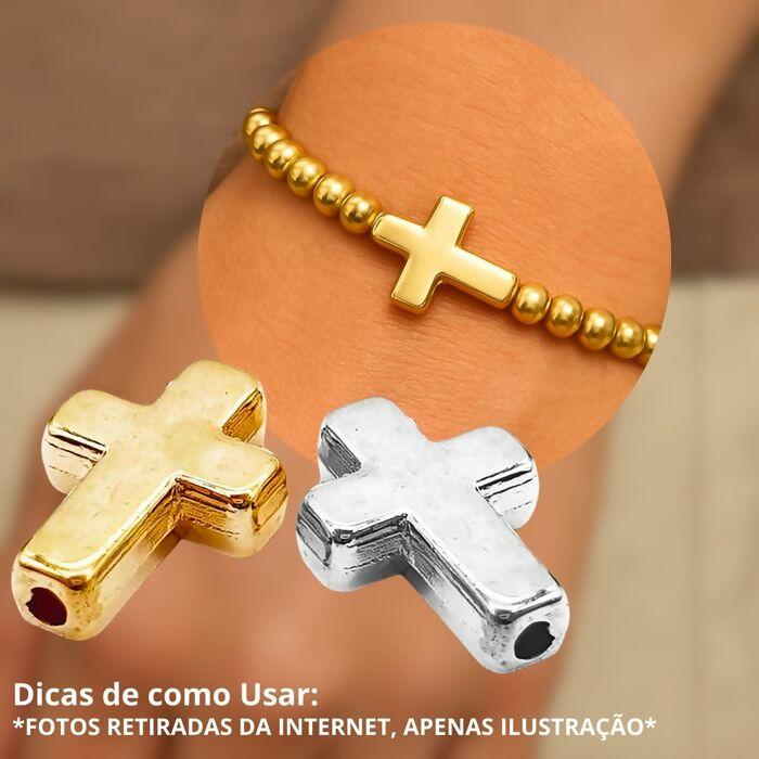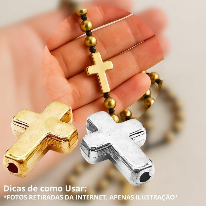 O entremeio cruz é uma peça versátil e delicada, ideal para composições modernas e criativas em acessórios. Com tamanho de 13mm x 9mm, possui furação que facilita a aplicação em pulseiras, colares, terços e chokers.