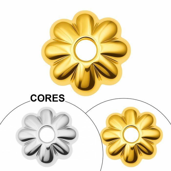 O entremeio flor é um acessório produzido em plástico resistente, disponível nas cores dourado e niquelado. Seu design em formato de flor com relevo proporciona charme e delicadeza, sendo perfeito para dar acabamento em colares, pulseiras, brincos e outros acessórios artesanais.
