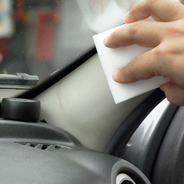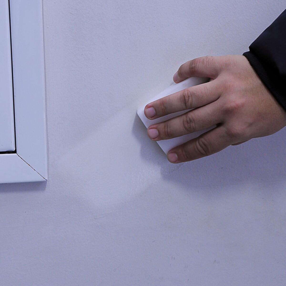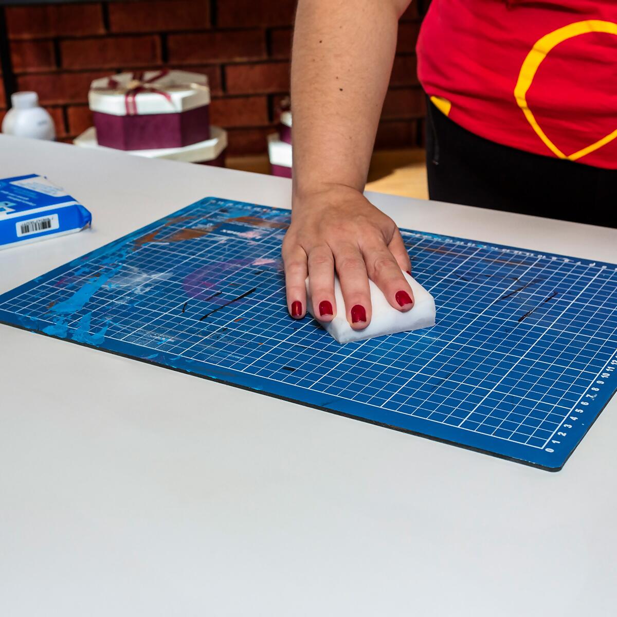 2. Esfregue a esponja sobre o risco ou mancha da superfície a ser limpa. Quando terminar, use uma toalha seca e limpa para remover a umidade.