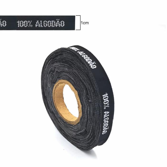 Descrição Etiqueta de Tecido Preto - bordado 100% Algodão - 1cm