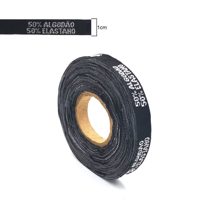 Descrição Etiqueta de Tecido Preto - bordado 50% Algodão 50% Elastano - 1cm