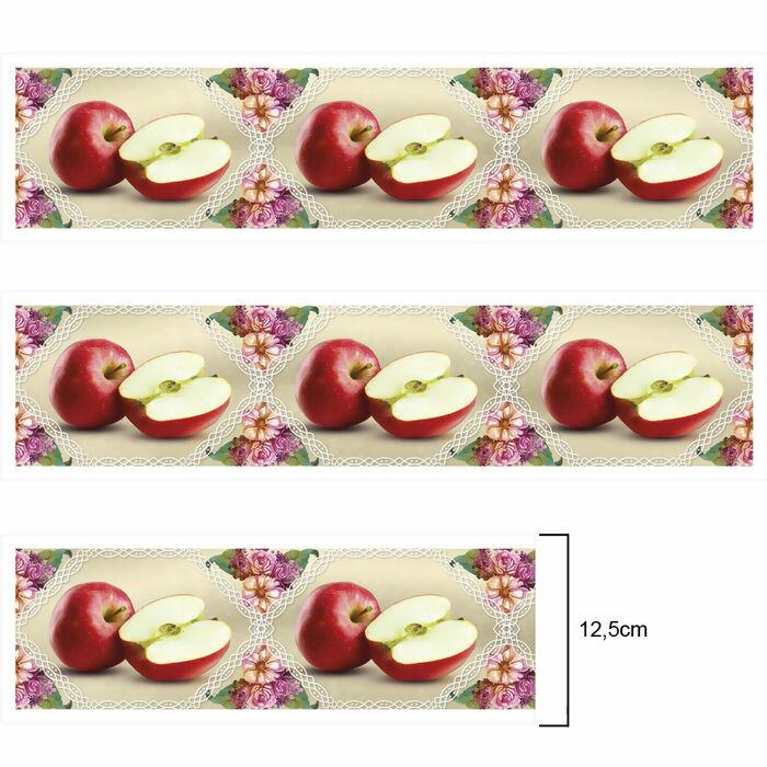 Descrição Faixa digital para pano de prato - Maçãs- 12,5 x 49cm - mod.907 - 009648