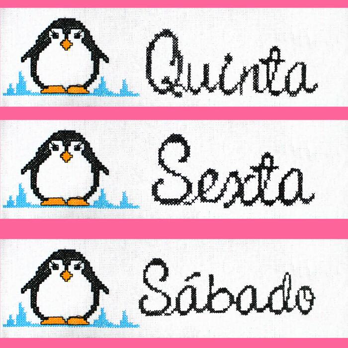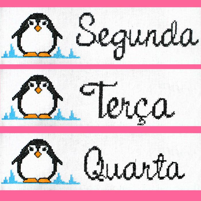 Faixa ponto cruz dias da semana pinguin