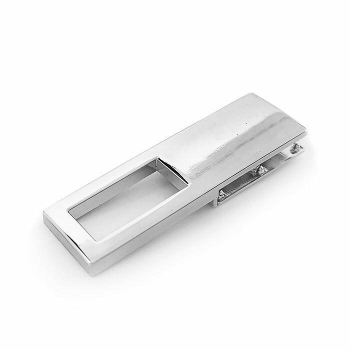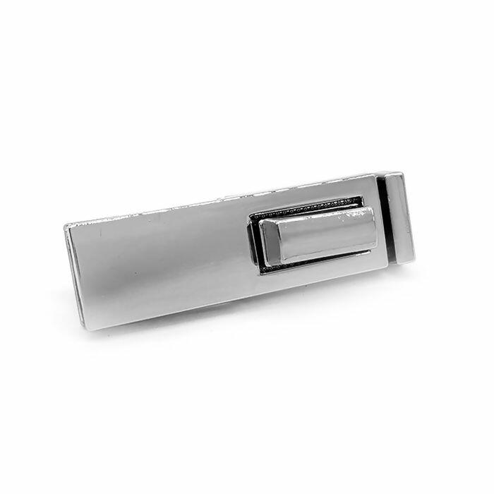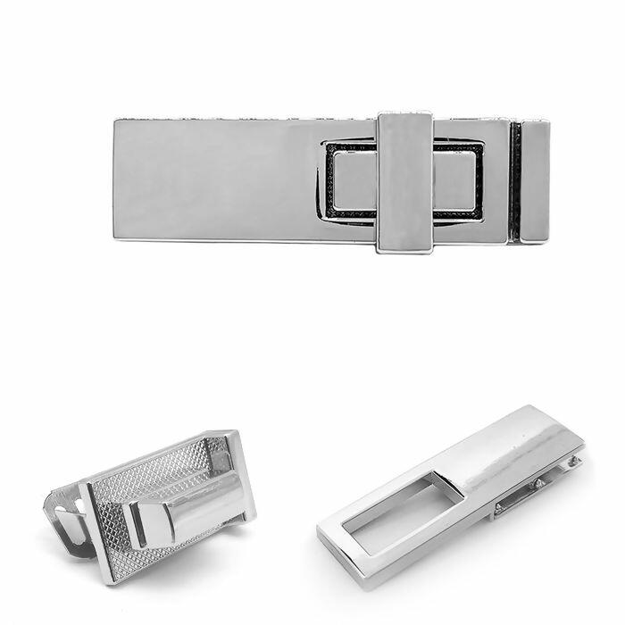 Garanta segurança e estilo para suas criações com este fecho de bolsa níquel em formato retangular. Fabricado em metal de alta qualidade, ele oferece acabamento sofisticado e durabilidade, ideal para bolsas artesanais, carteiras, mochilas, pastas e peças de couro.