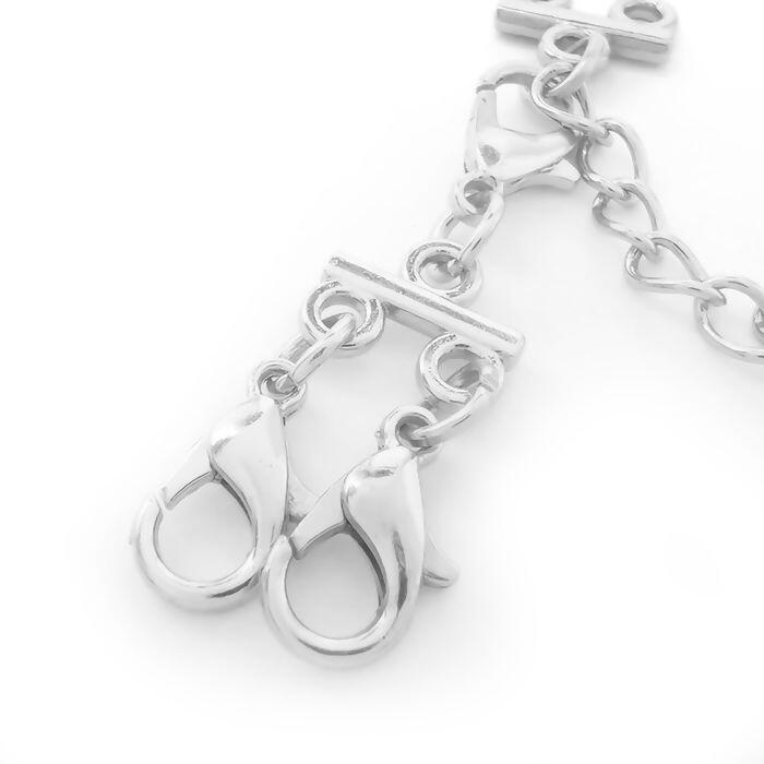 O fecho duplo com corrente é o acessório ideal para garantir segurança e praticidade em bijuterias, especialmente colares e pulseiras. Composto por dois mosquetões robustos e uma corrente extensor, esse fecho permite ajuste de tamanho e aplicação rápida, oferecendo um acabamento elegante às suas peças artesanais.