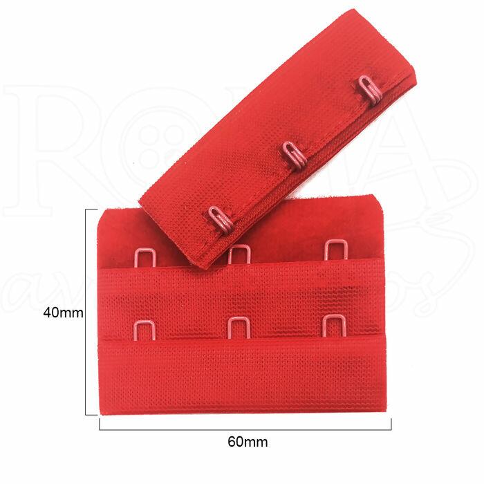 Fecho il para sutiã - 3 ganchos - 100 unidades - 60mm - Vermelho - 056709
