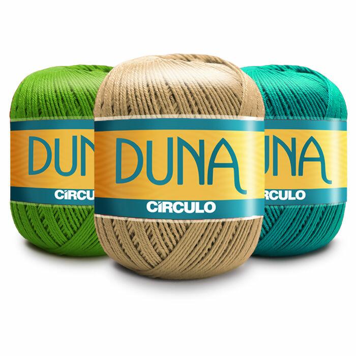 Duna proporciona ótimo rendimento e acabamento às peças tecidas. Composto 100% por fibras de algodão mercerizado possui uma espessura delicada e torção diferenciada. Ideal para ser usado em peças de vestuário e decoração.