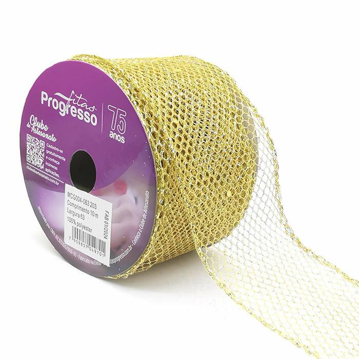 Fita Aramada com Glitter - 63mm x 10m - Dourado 203 - MCG004-063