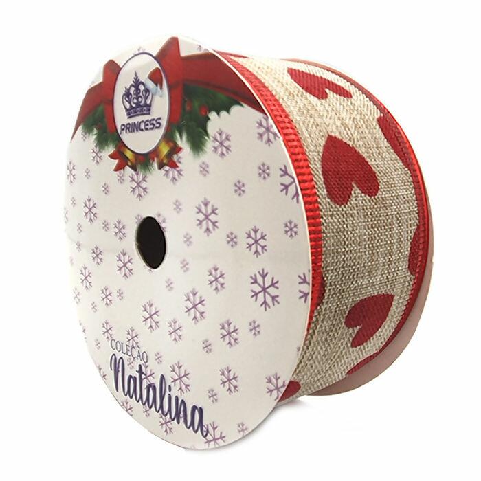 Fita Aramada Natal Princess - 38mm x 10m - Cru/ Vermelho - RO.153496
