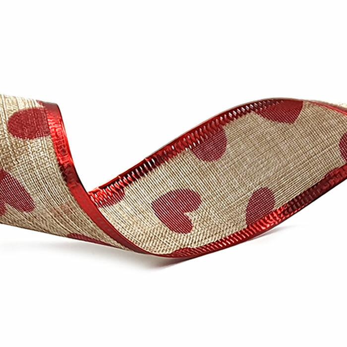 Descrição Fita Aramada Natal Princess - 38mm x 10m - Cru/ Vermelho - RO.153496