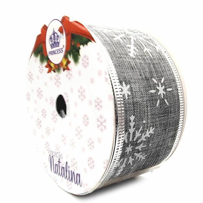 Descrição Fita Aramada Natal Princess - 50mm x 10m - Branco/Cinza - RO.153503