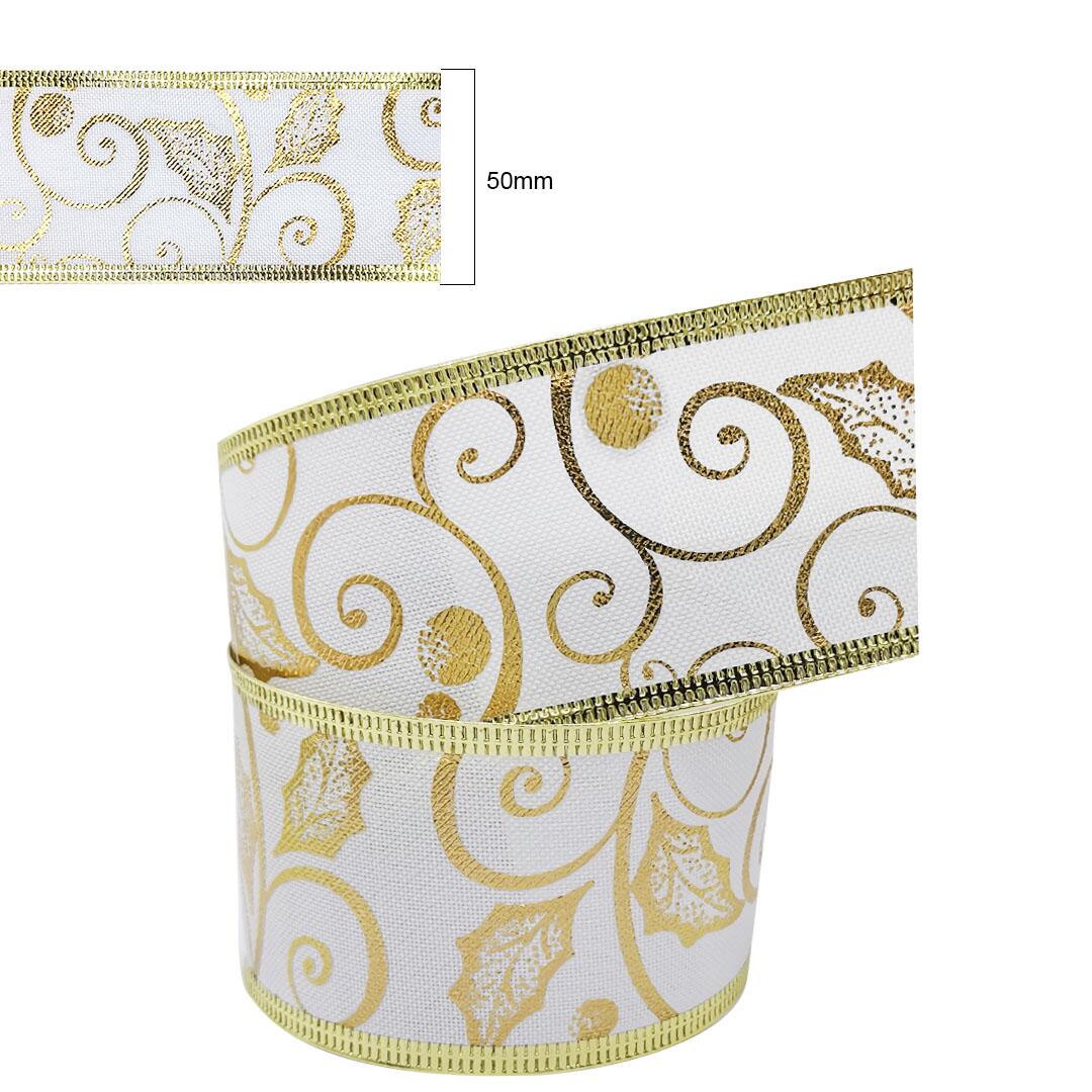 Descrição Fita Aramada Natal Princess - 50mm x 10m - Branco/Dourado - RO.153498