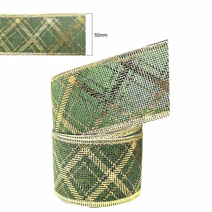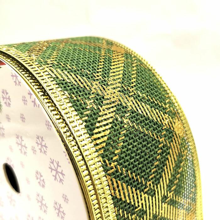 Descrição Fita Aramada Natal Princess - 50mm x 10m - Verde Bandeira/Dourado - RO.153504