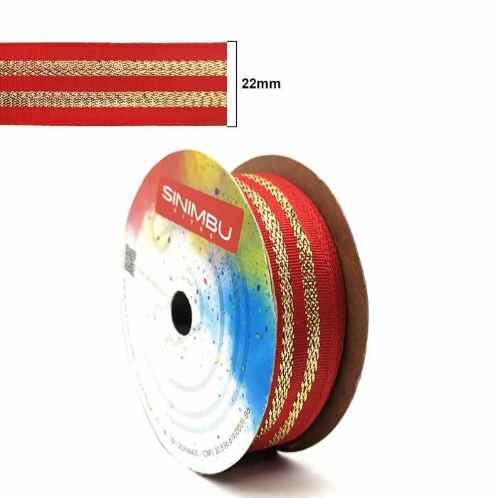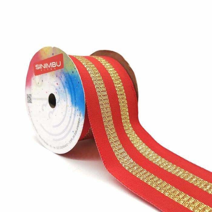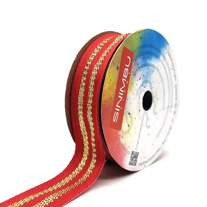 Fita Aramada Sinimbu Vermelha com Listras Douradas