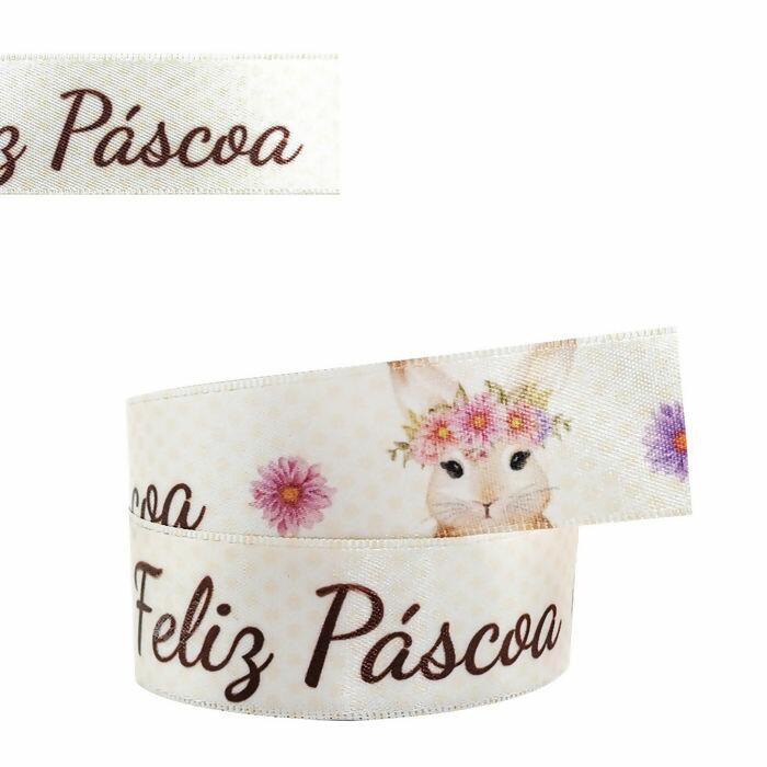 Descrição Fita Cetim - 22mm x 10m - Feliz Páscoa 151 - ECF005TR