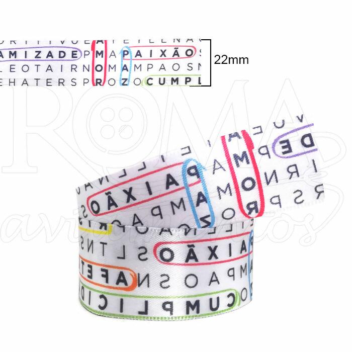 Descrição Fita Cetim Caça Palavras Progresso - 22mm x 10m - Vermelho - ECF005H