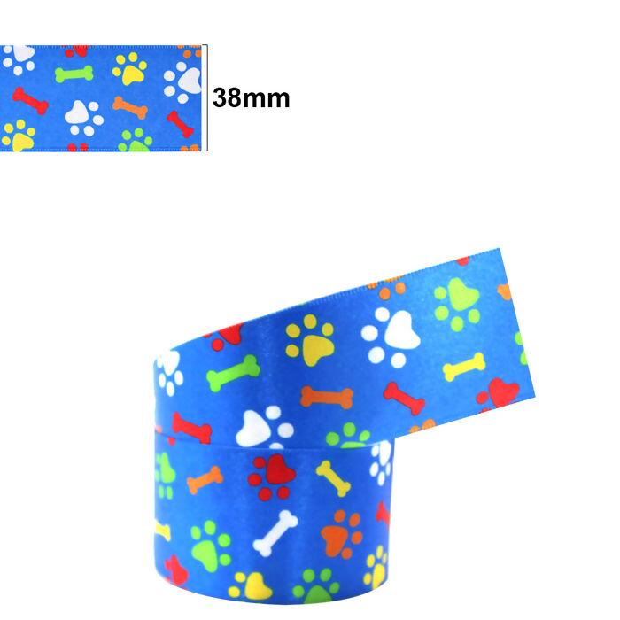Fita Cetim Pet - Patinhas e Ossinhos Coloridos 049 - 38mm x 10m - ECF009TR