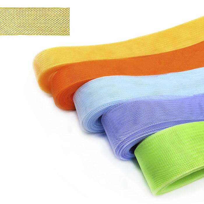 Fita de Crinol ideal para confecção de laços, embrulhos de buquês, encapar tiaras e presilhas e também o crinol preserva o tecido da saia e evita que ele seja danificado se for arrastado no chão deixando a saia mais aberta, com sustentação e protegida.