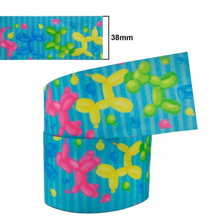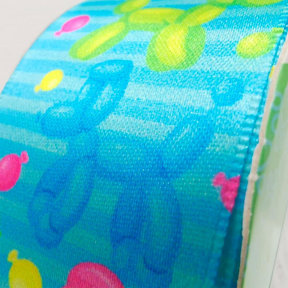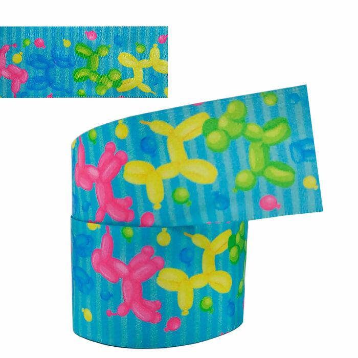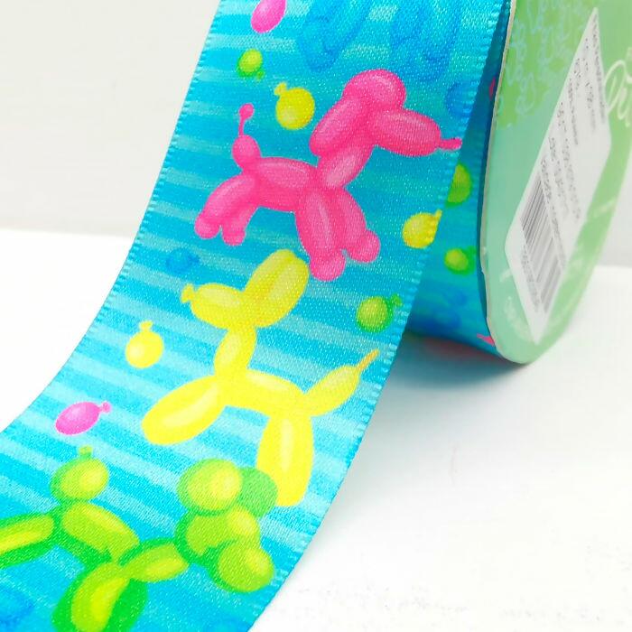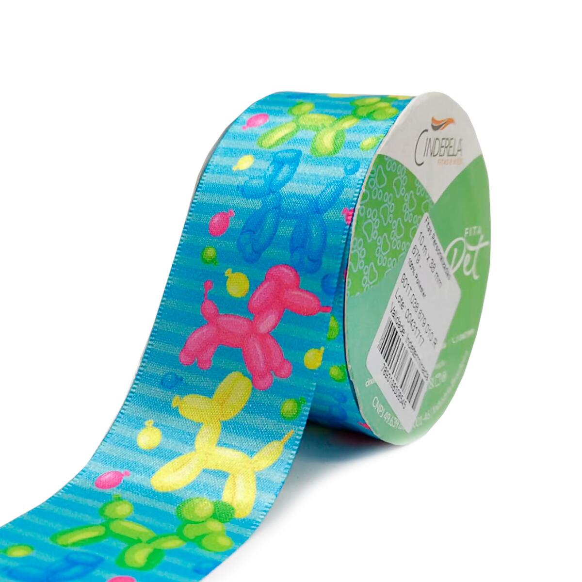 A Fita de Cetim Balões é perfeita para quem quer trazer alegria e cor aos projetos artesanais! Com fundo azul vibrante e estampa de balões modelados em formato de cachorro, nas cores rosa, amarelo, verde e azul, ela transmite um visual lúdico e divertido, ideal para lembrancinhas e decorações infantis.