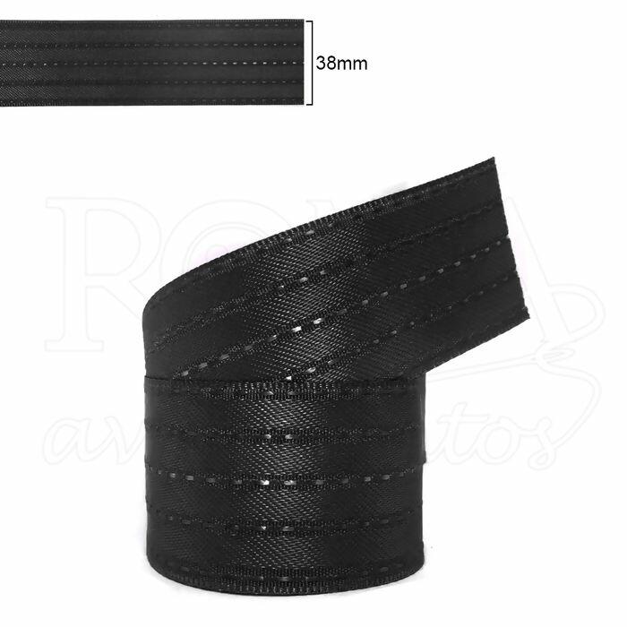 Fita de Cetim Decorativa Pontilhada - 38mm x 10m - Preto 16 - 1852