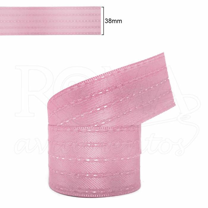 Fita de Cetim Decorativa Pontilhada - 38mm x 10m - Rosa Médio 1773 - 1852