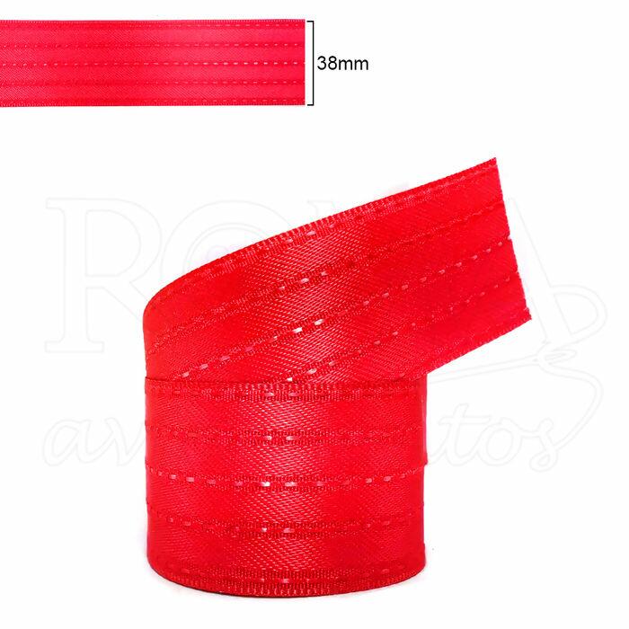 Fita de Cetim Decorativa Pontilhada - 38mm x 10m - Vermelho 976 - 1852