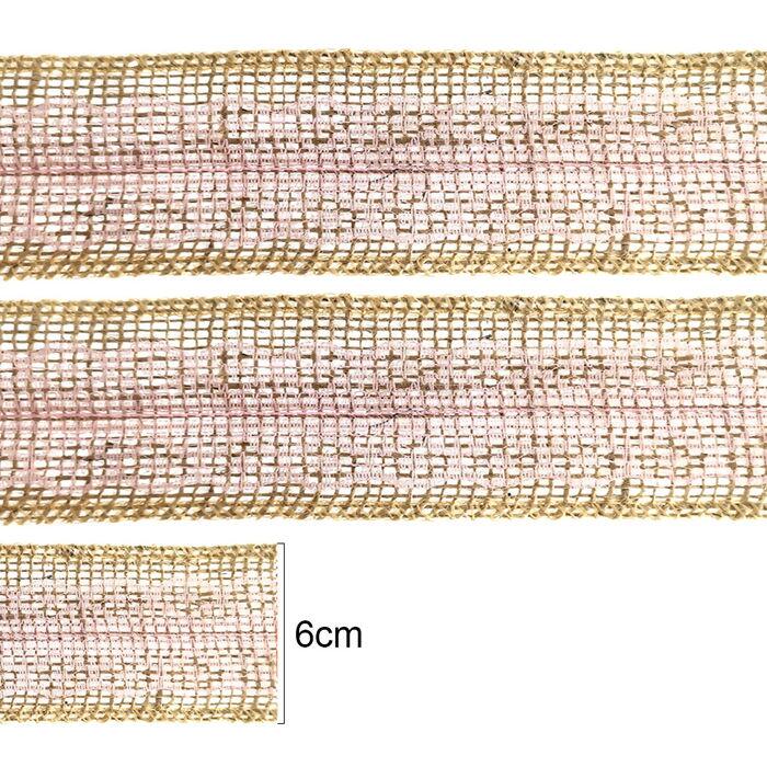 Fita de juta c/renda tam. 60mm x 9,5m - cru e rosa - 34787