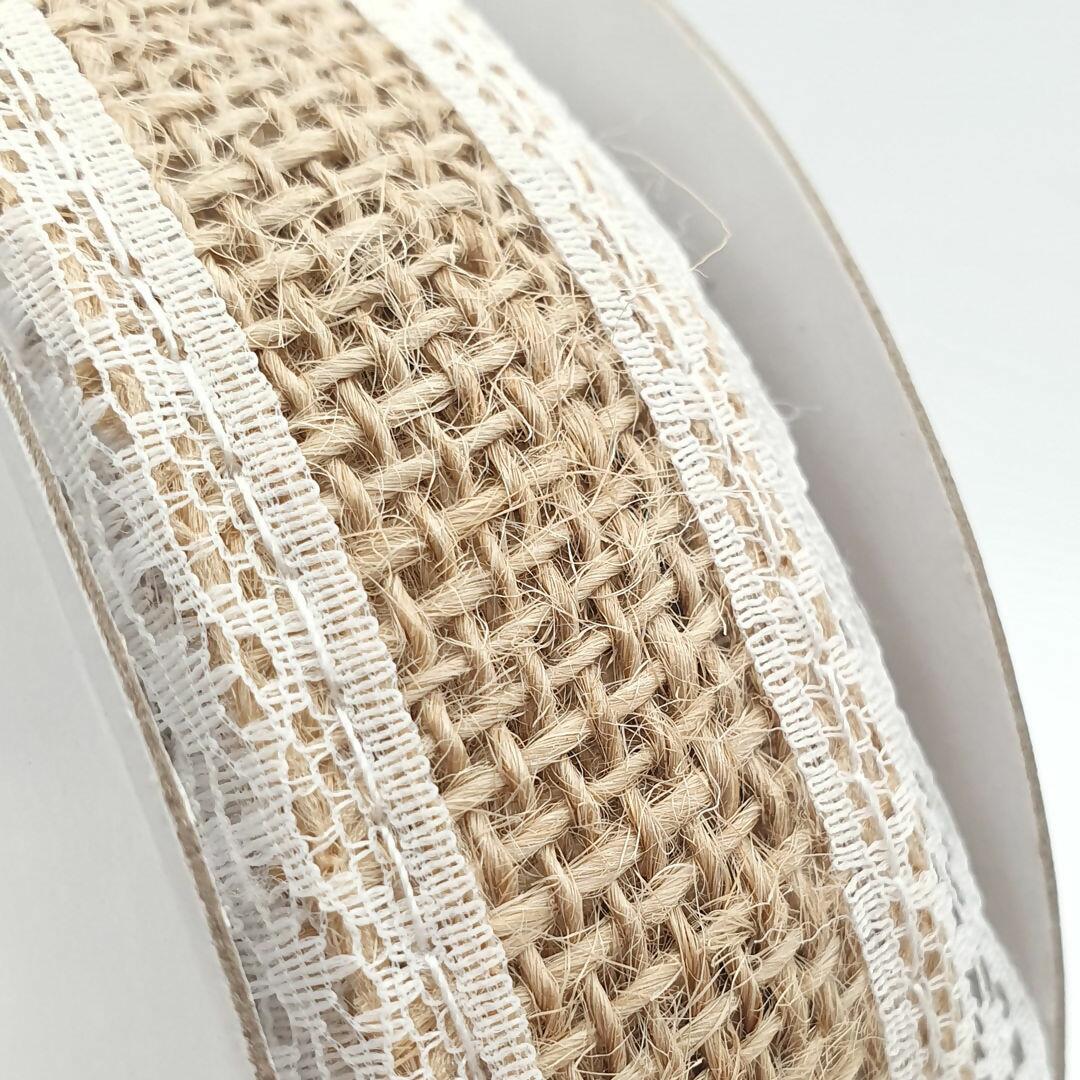 Detalhe Fita de Juta com Renda - 40mm x 10m - Cru - RO.152917
