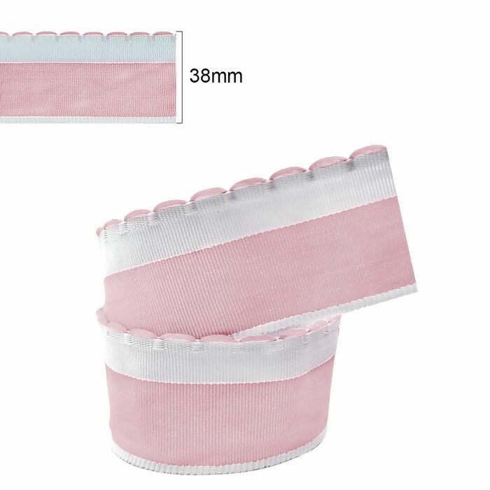 Descrição Fita Decorada - 38mm x 10m - Rosa e Branco - 1900/38