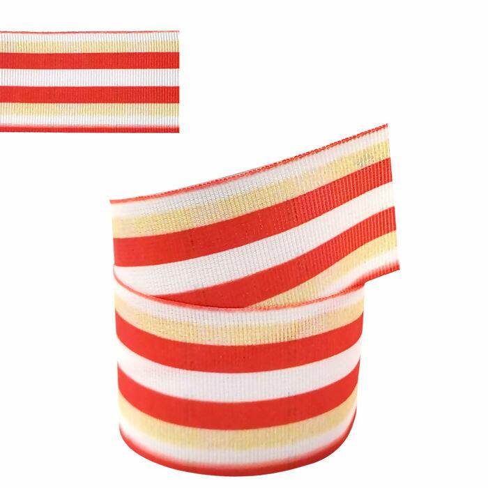 Fita Decorativa - 38mm x 10m - Branco/Vermelho/Bege - G3066