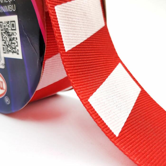 Fita Decorativa Gorgurão Listra - Listra Vermelho/Branco C01