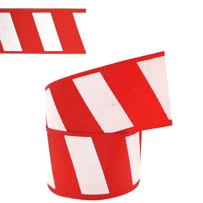 Fita Decorativa Gorgurão Natal - 38mm x 10m - Listra Vermelho/Branco C01 - 1929/38