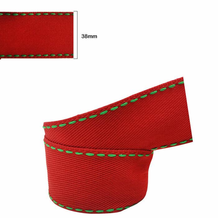 Fita Decorativa Jeans Pespontada - 38mm x 10m - Vermelho/ Verde C20 - 1785/38