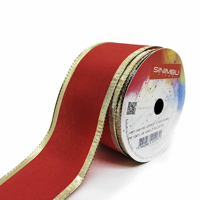 Fita Decorativa Natalina - 50mm x 10m - Vermelho/Ouro C01 - 1451/50