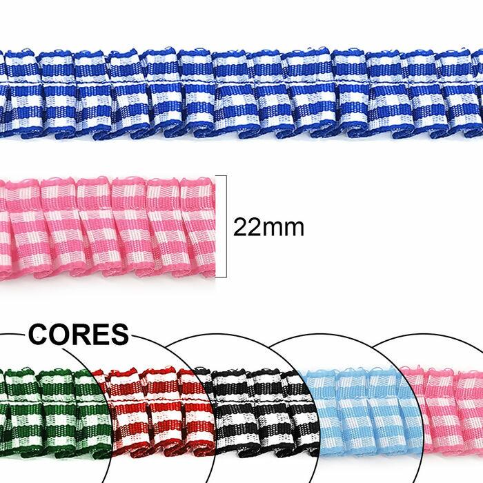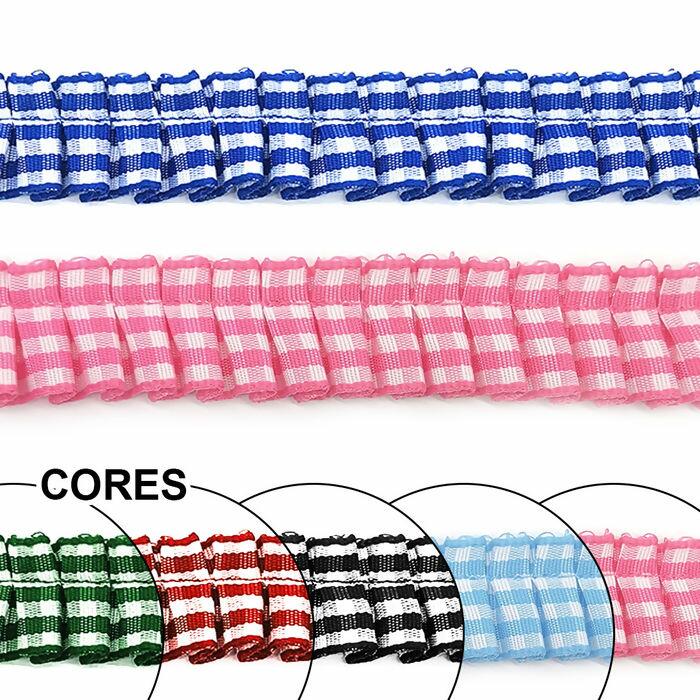 A fita drapeada xadrez é perfeita para quem busca sofisticação com um toque retrô em seus projetos artesanais. Com franzidos delicados e padrão xadrez clássico, essa fita adiciona textura e movimento a laços, tiaras, embalagens e decorações. Seu caimento elegante valoriza desde itens infantis até produções rústico-chiques.