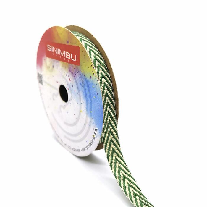 Descrição Fita Espinha de Peixe Metálica - 10mm x 10m - Verde/Ouro C06 - 1976/10