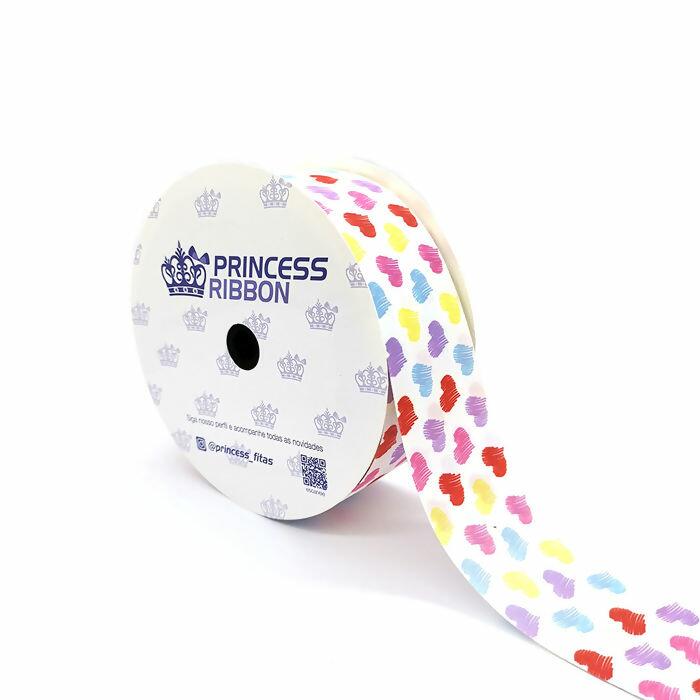 Descrição Fita Estampada Princess - Coração Multicor - 38mm x 10y - RO.153559