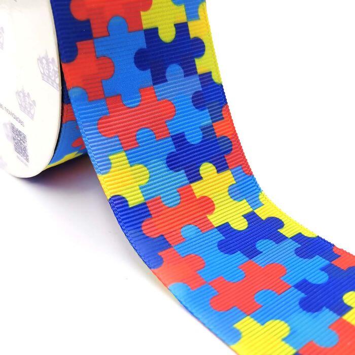 Detalhe Fita Estampada Quebra Cabeça Autismo Princess - 38mm x 10m - RO.153093